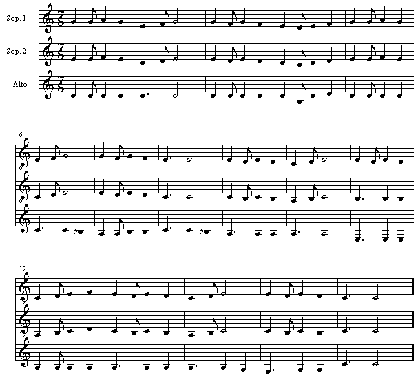 ![]() Hear it! Hear the soprano 1 part. Hear the soprano 2 part. Hear the alto part. |